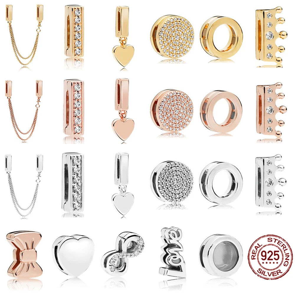 Новинка 100% 925 пробы серебряные рефлексоры зажим очаровательные сияющие золотые и розовые прозрачные CZ кубический циркон подходит для девуш...