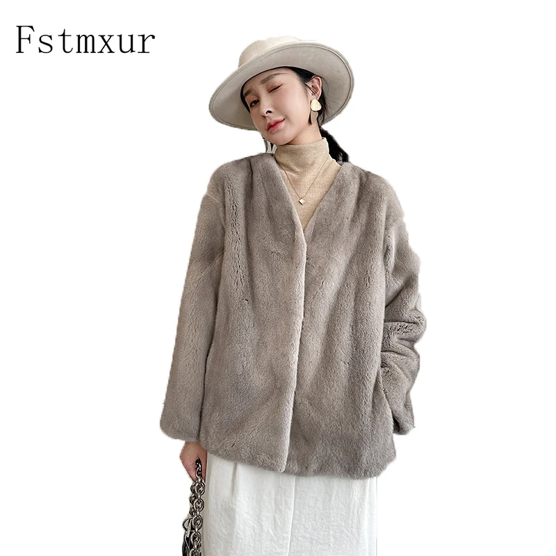 Новинка 2021, Копенгагенская импортная норковая шуба Fstmxur Velvt, Женская однотонная теплая мягкая короткая шуба из меха норки с длинным рукавом и V-образным вырезом