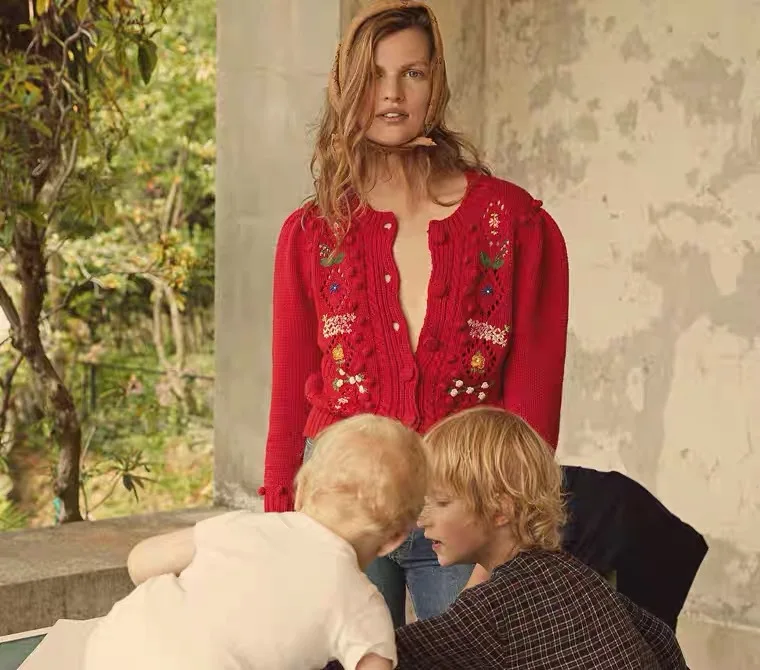 Новинка 2021 Тяжелая ручная вышивка цветок вязаный шарик украшенный красный свитер
