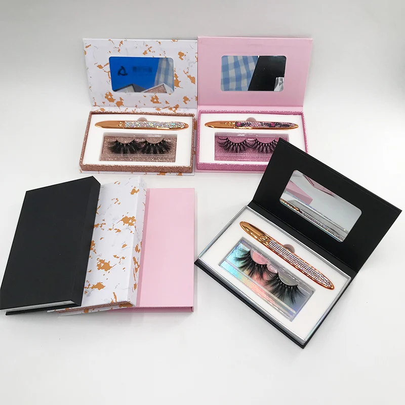 Новинка 2021, книжка для ресниц с зеркалом на заказ, черные и розовые книжки, подводка для глаз, 25 мм посылка норковых ресниц