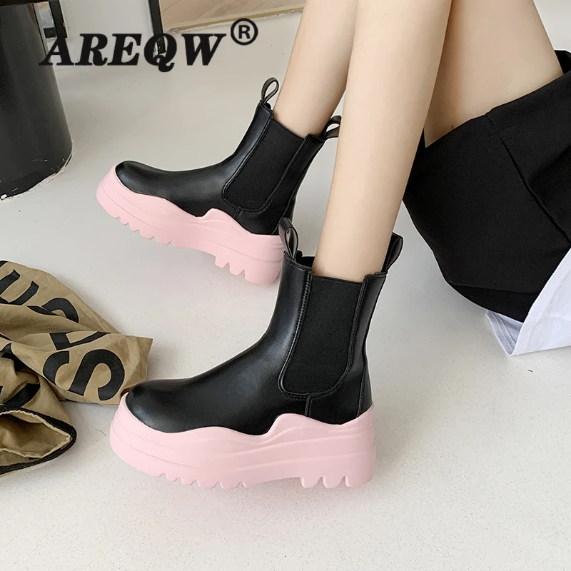 Новинка 2021, массивные ботинки, модные женские ботильоны на платформе, женские ботильоны с мешочком на подошве, женские ботильоны без застеж...