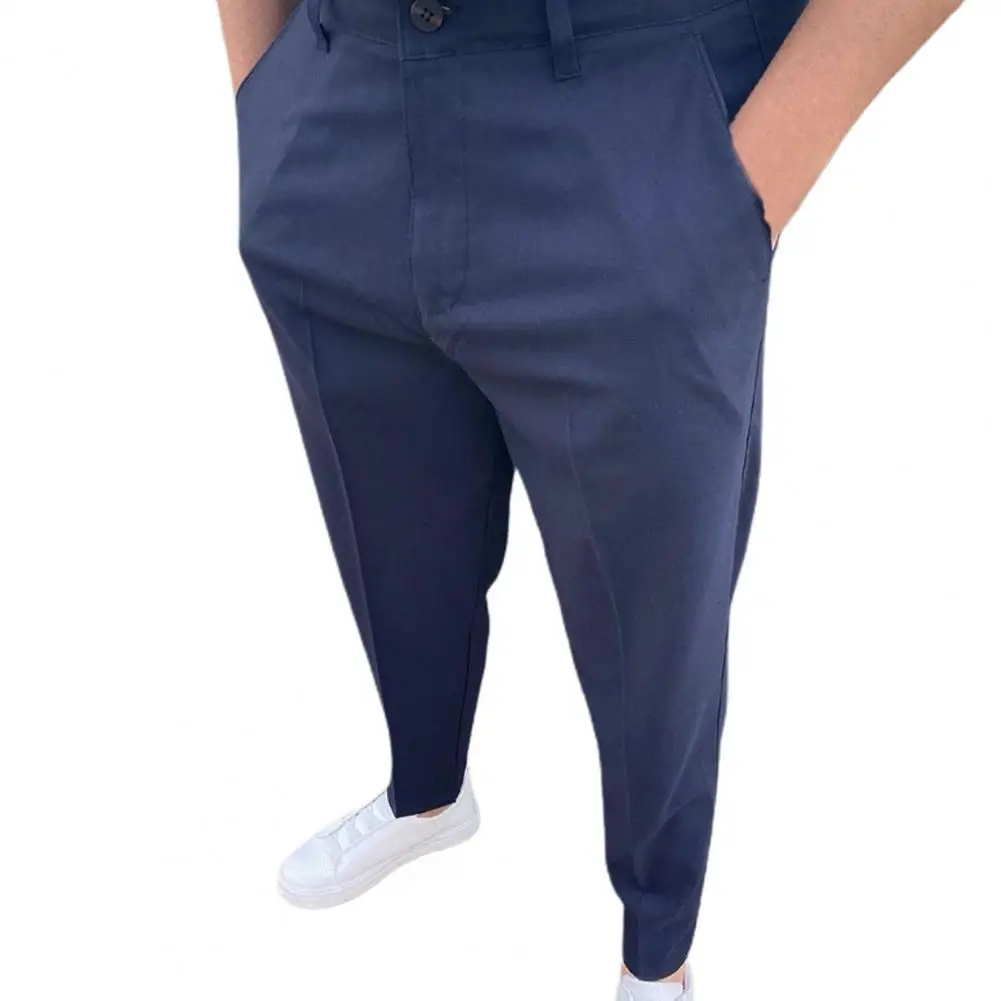 Новинка 2021, осенние мужские брюки, однотонные облегающие деловые прямые брюки, деловые тренировочные брюки