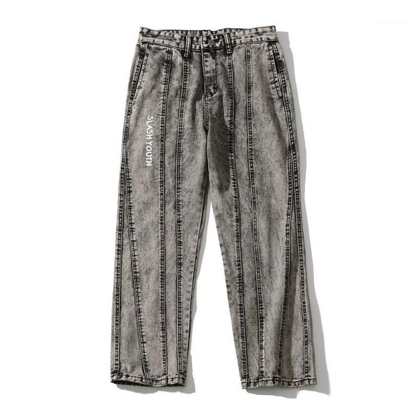letter wahsed retro ripped jeans for men straight streetwear harajuku loose casual mens denim trousers hip hop zipper pants1, Blue