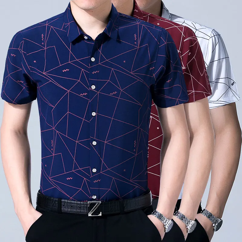 Новинка 2022, Летняя мужская рубашка, повседневные мужские классические рубашки с коротким рукавом, мужская полосатая рубашка