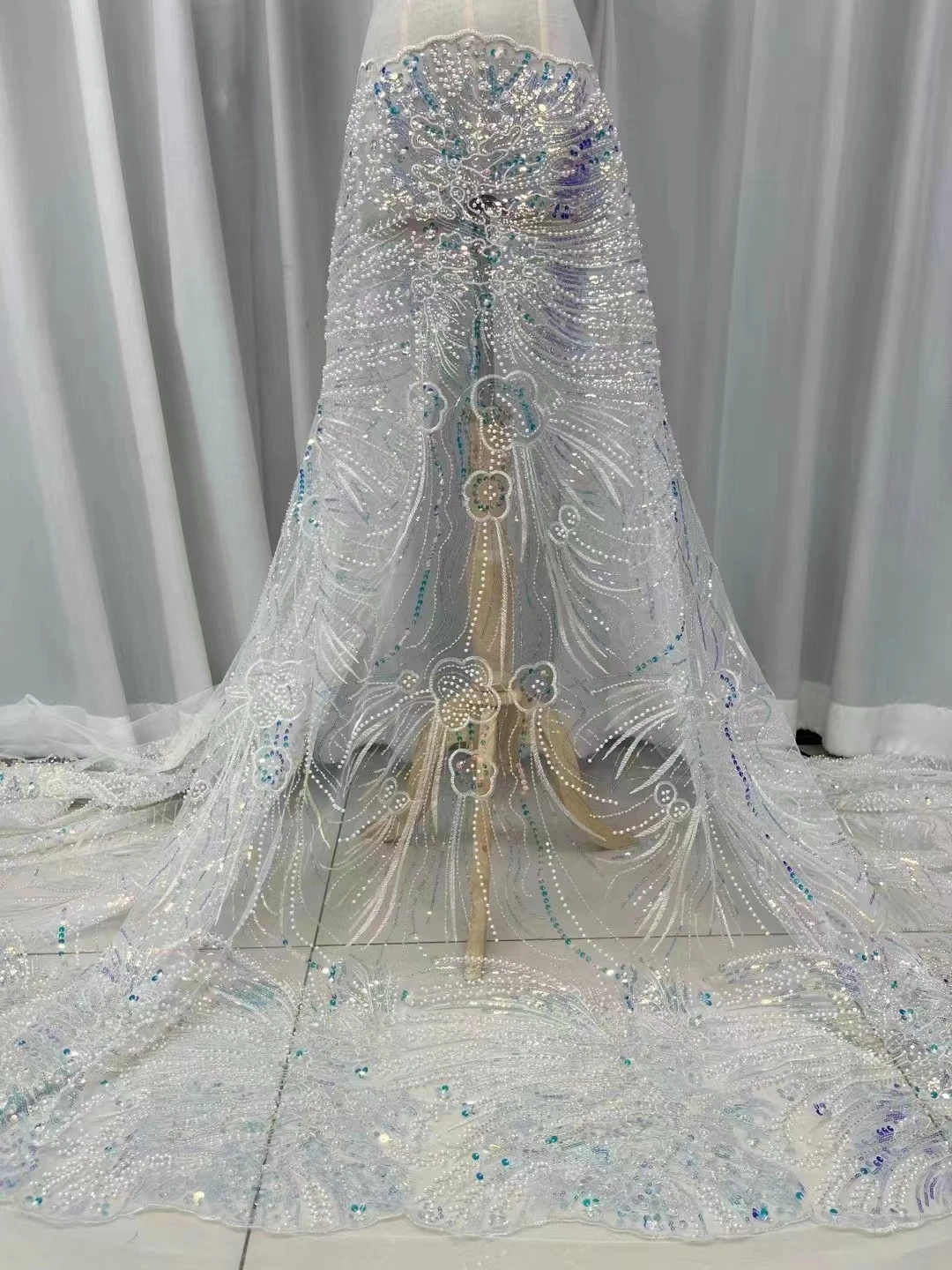 Новинка 2022 Тюль кружевная ткань высокого качества африканская вышивка швейцарский французский гипюр Блестки свадебное платье с бисером 5 я...