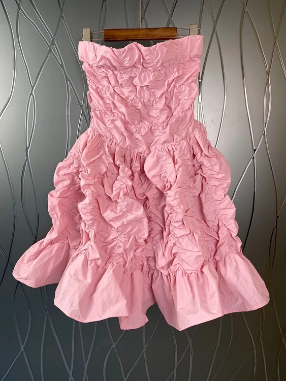 Новинка 2022, женское модное изысканное Плиссированное Привлекательное платье-топ без рукавов, розовое платье с широкой юбкой, 525