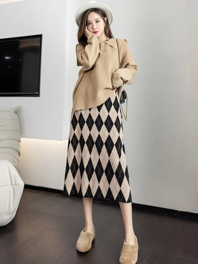 Новинка 2022, зимняя одежда, утепленная облегающая вязаная юбка трапециевидной формы со стразами и разрезом, бесплатная доставка