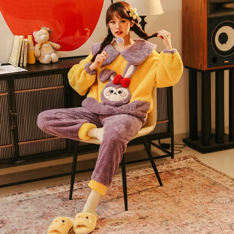 Новинка 2022, зимняя плюшевая Толстая теплая Пижама кораллового цвета, Женская милая фланелевая Домашняя одежда с круглым воротником