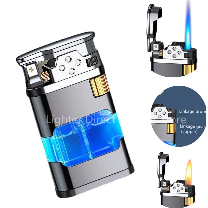 Новинка 2022, креативная зажигалка, металлическая зажигалка для сигар, ветрозащитная надувная зажигалка с шлифовальным кругом и открытым огн...