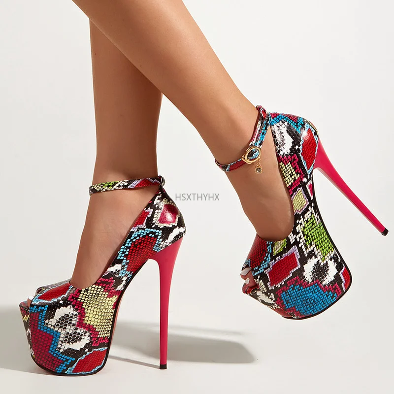 Новинка 2022, стильные сандалии на платформе, тонкий каблук, модные разноцветные сандалии с открытым носком и ремешком с пряжкой, модельные ту...
