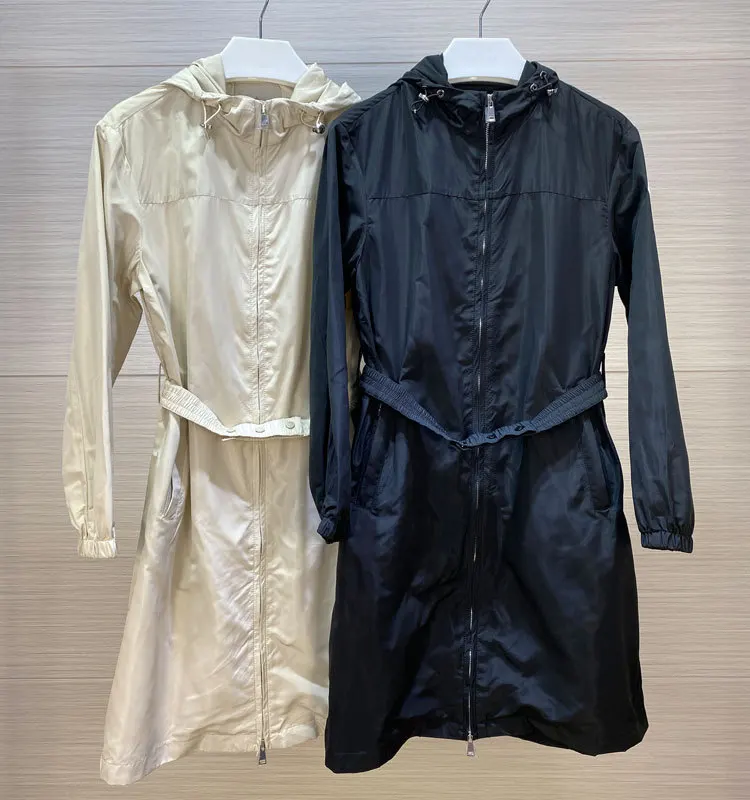 Новинка 2023 Женская ветровка легкая облегающая Талия Женская ветровка средней длины Простой женский стиль с капюшоном
