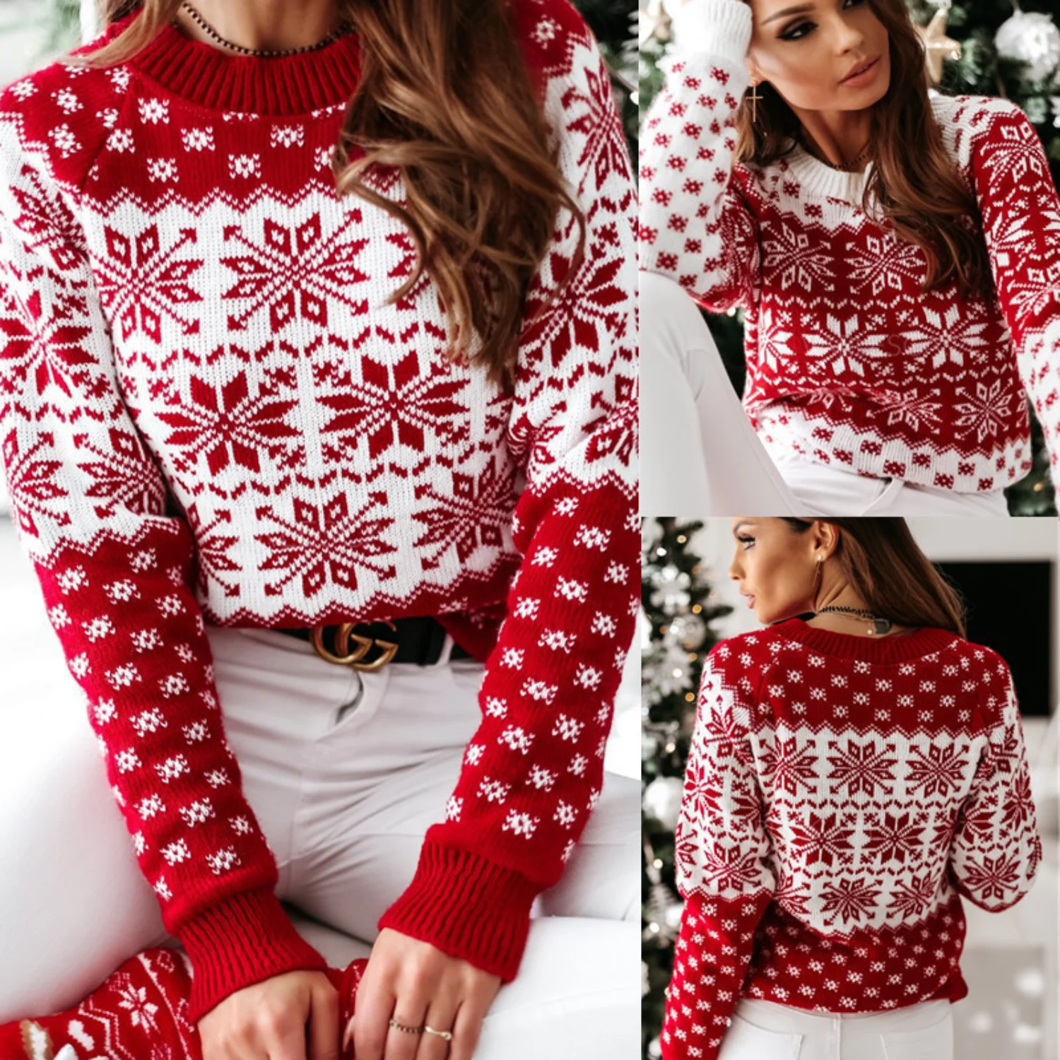 Новинка 2023, Женский Рождественский вязаный свитер с длинным рукавом и снежинками
