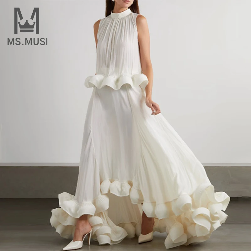 Новинка 2023, Модный женский сексуальный костюм MSMUSI из двух предметов с оборками, облегающий костюм из майки и длинной юбки с воротником без рукавов