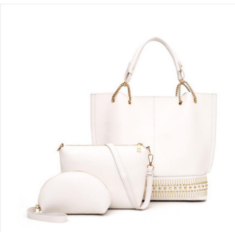 Новинка 2023 года, женская сумка для матери и ребенка, комплект из трех предметов, модная сумка через плечо на одно плечо, универсальная ручная большая сумка с заклепками 33x15x30cm белый