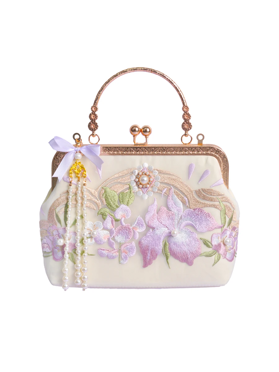 Новинка 2023 г., белая Золотая сумка angelaмощность с цветочной вышивкой, кружевная Женская сумочка в японском стиле «лолита» на крыше с радужным узором, женская сумка-тоут с жемчужной рамкой