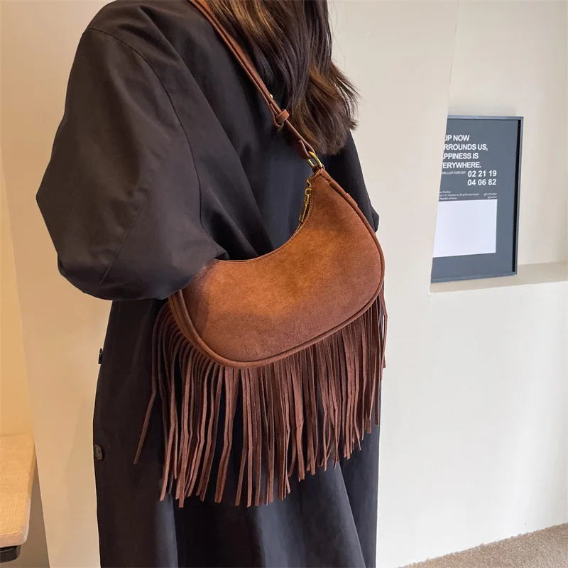 Новинка 2023, женские замшевые сумки с бахромой, винтажные женские сумки, 3 цвета, Прямая поставка