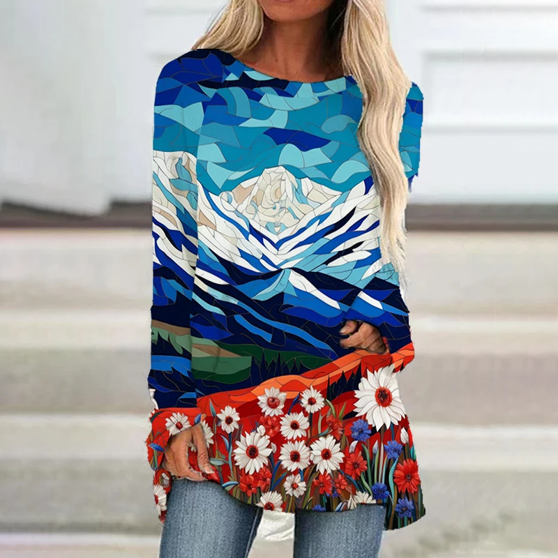 Новинка 2023, женское платье с длинным рукавом, женское платье с длинным рукавом и 3D-принтом снега и гор, повседневное женское платье с длинным рукавом