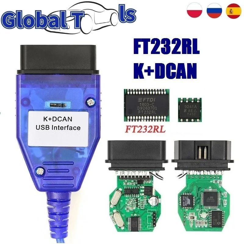 Новинка 2023, интерфейсы K + CAN диагностический кабель USB для FT232RL DCAN с переключателем DIS SSS NCS, кабели и разъемы кодирования