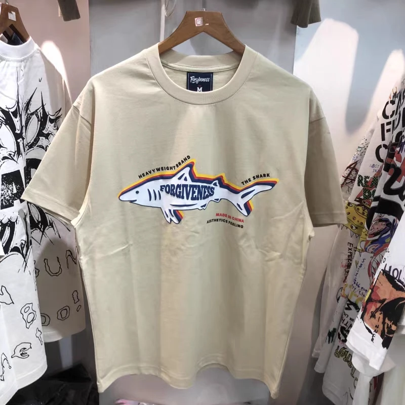 Новинка 2023, летняя модная свободная хлопковая Футболка с принтом акулы для мужчин и женщин