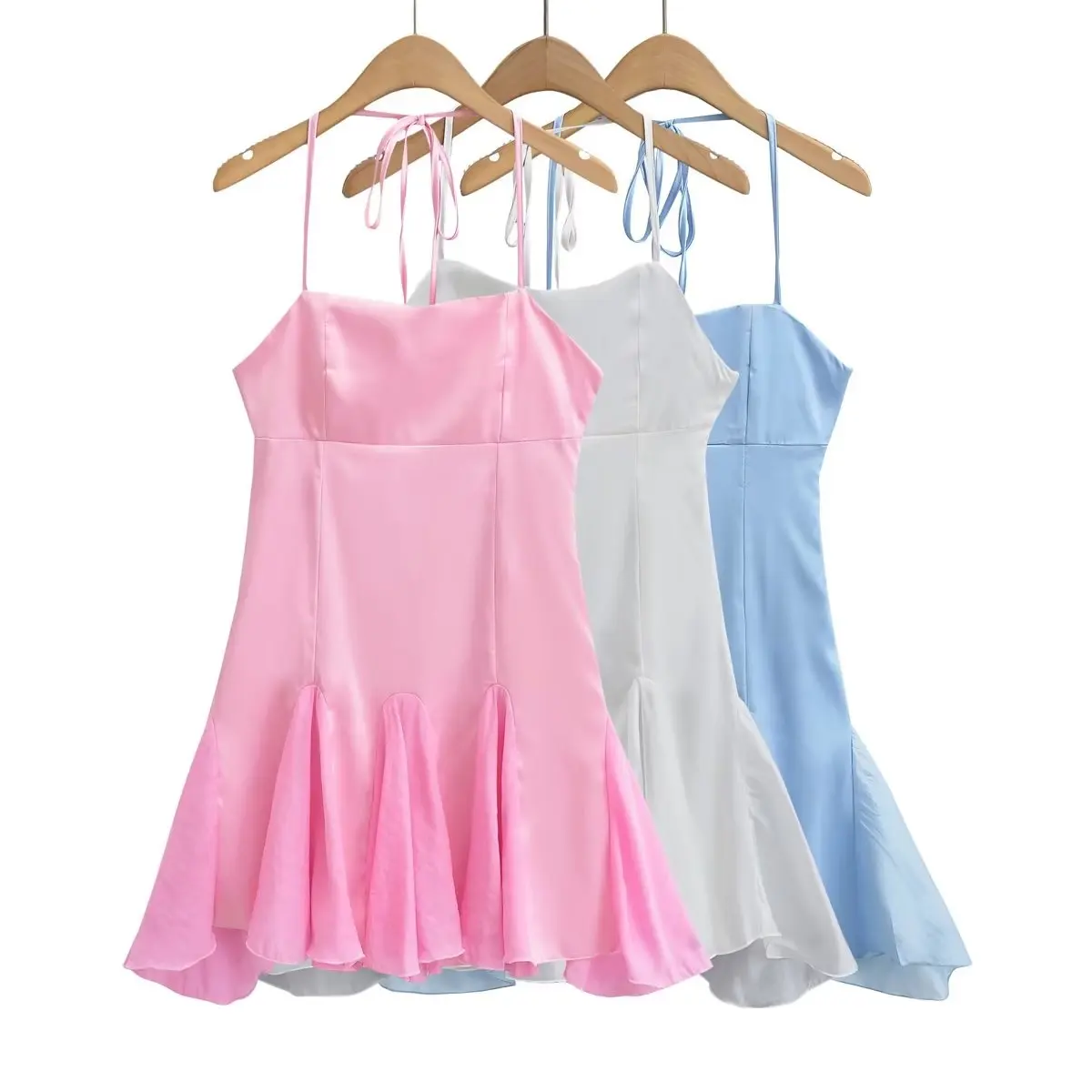 Новинка 2023, модная женская одежда, милая многоцветная пикантная майка с оборками и открытой спиной, платье