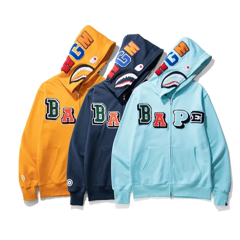 Новинка 2023, модная уличная одежда в стиле хип-хоп для мужчин и женщин с вышитыми буквами акулы, толстовка из чистого хлопка высокого качества