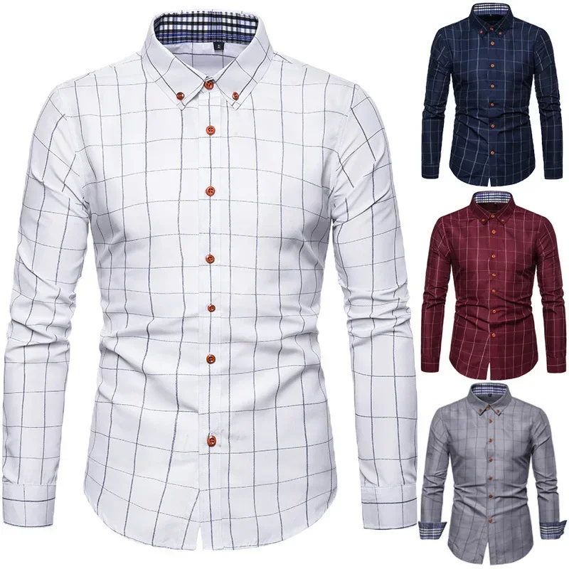 Новинка 2023, мужская клетчатая рубашка, молодежная Модная Повседневная рубашка с длинным рукавом