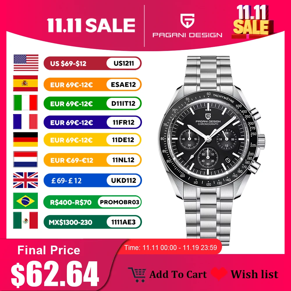 Новинка 2025, мужские часы PAGANI DESIGN, лучший бренд класса люкс, автоматический кварцевый хронограф, водонепроницаемые спортивные часы из нержавеющей стали, Relogio