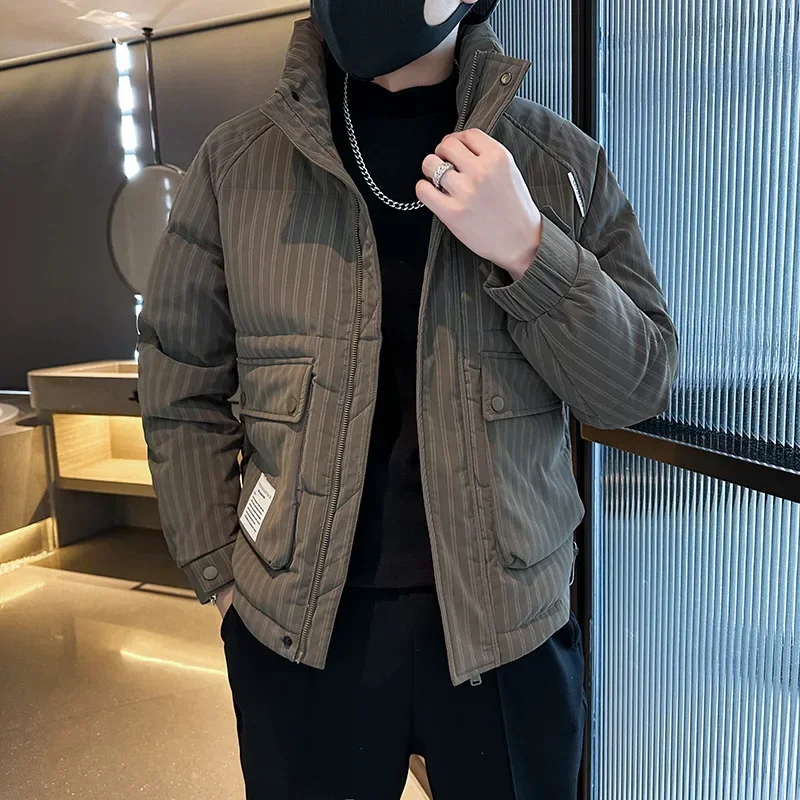 Новинка 2023, мужское модное и красивое пальто, приталенный силуэт, пуховик с воротником-стойкой на осень и зиму