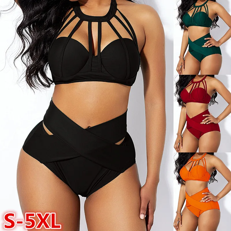 Новинка 2023, однотонный сексуальный комплект бикини, Женский однотонный купальник с высокой талией и разрезом на талии