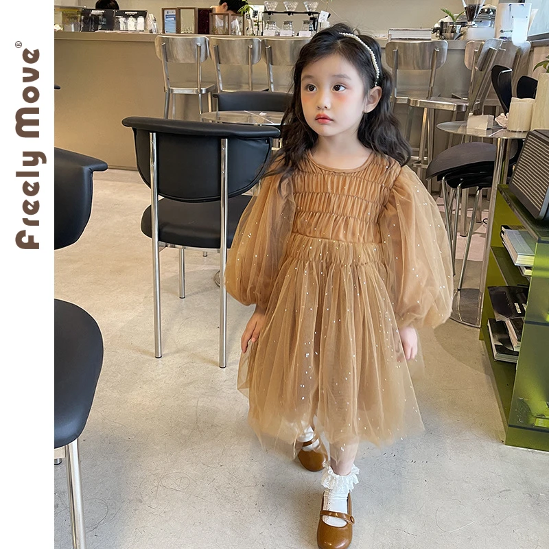 Новинка 2023, платья для девочек, Осеннее фатиновое детское платье с длинным рукавом, милая детская одежда, платье-пачка, платье принцессы для девочек