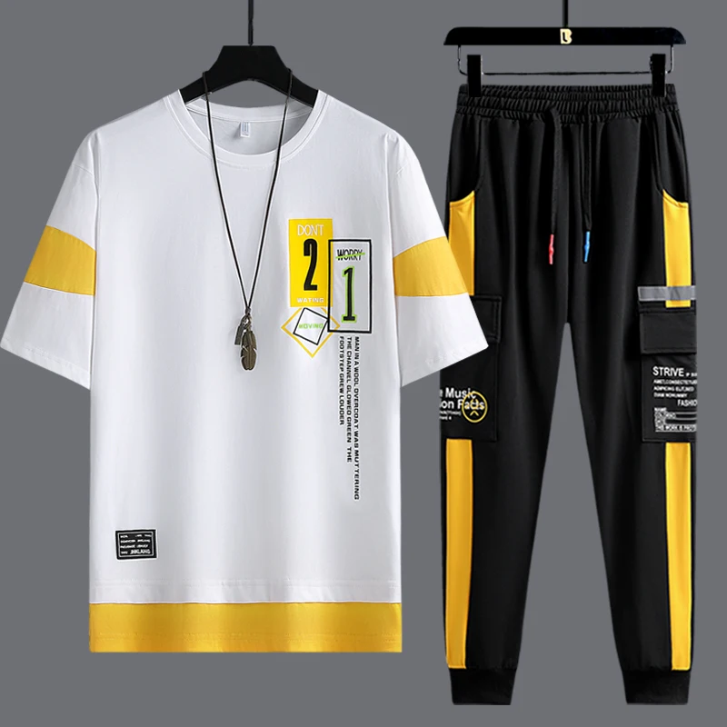 Новинка 2023, спортивные костюмы с футболкой, футболки, мужские штаны, комплект из 2 предметов, одежда для мужчин, футболки, спортивный костюм, толстовки 0062