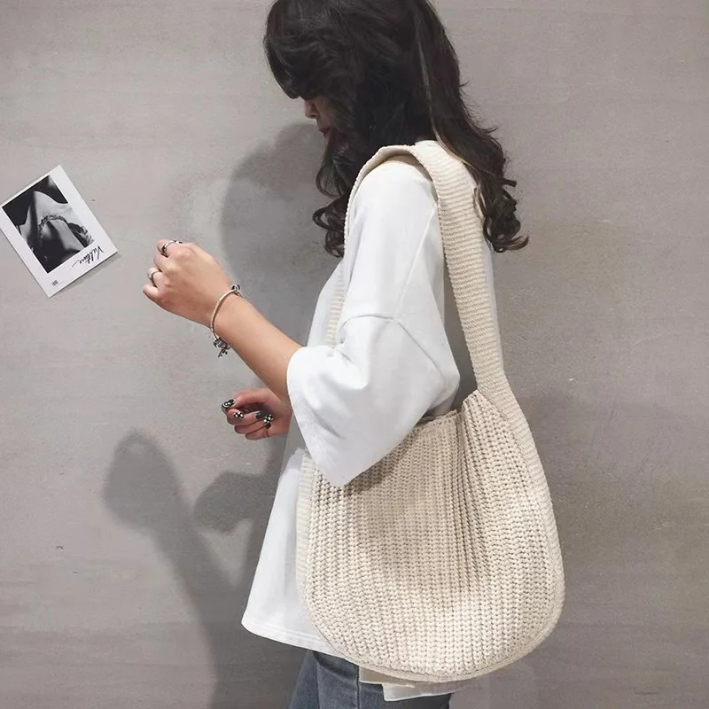 Новинка 2023, сумка через плечо, вязаная сумка, вместительная сумка-тоут, сумка на плечо, женская мода