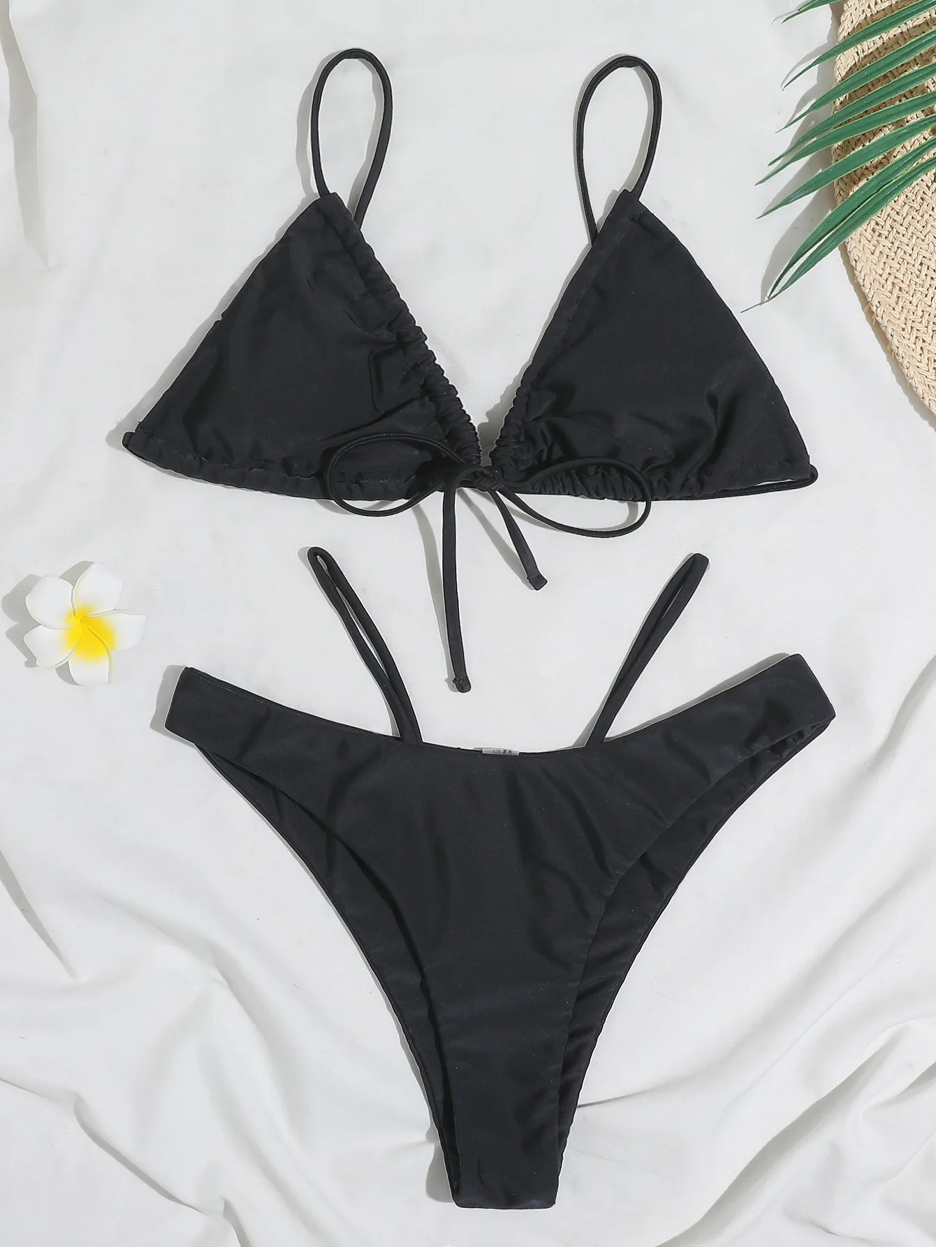 Новинка 2023, черное пикантное бикини на шнуровке, Раздельный купальник, купальник