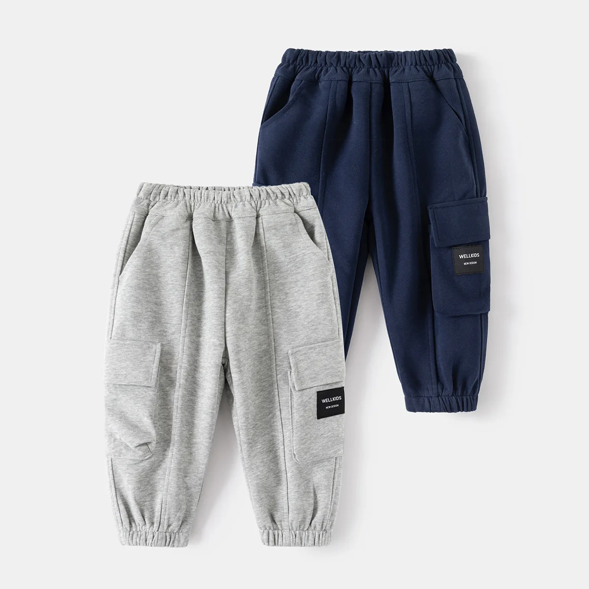 Новинка 2024, Детские повседневные спортивные брюки, модные однотонные свободные спортивные брюки с карманами для маленьких мальчиков, детская одежда на весну и осень