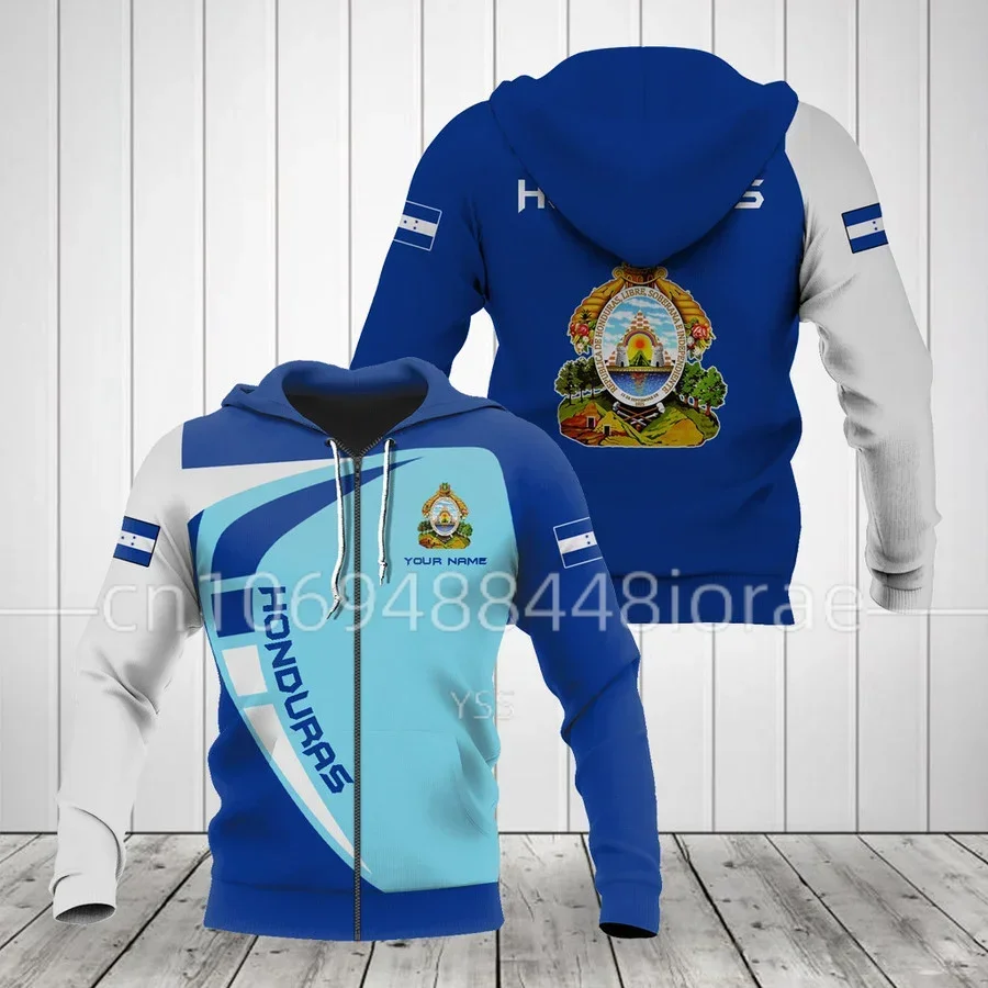 Новинка 2024, Повседневная Уличная толстовка с капюшоном и молнией для мужчин и женщин, с 3D принтом и названием гондурасского флага