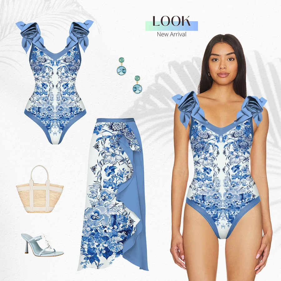 Новинка 2024, Цельный купальник с 3D цветочным принтом, женская пляжная одежда, купальный костюм
