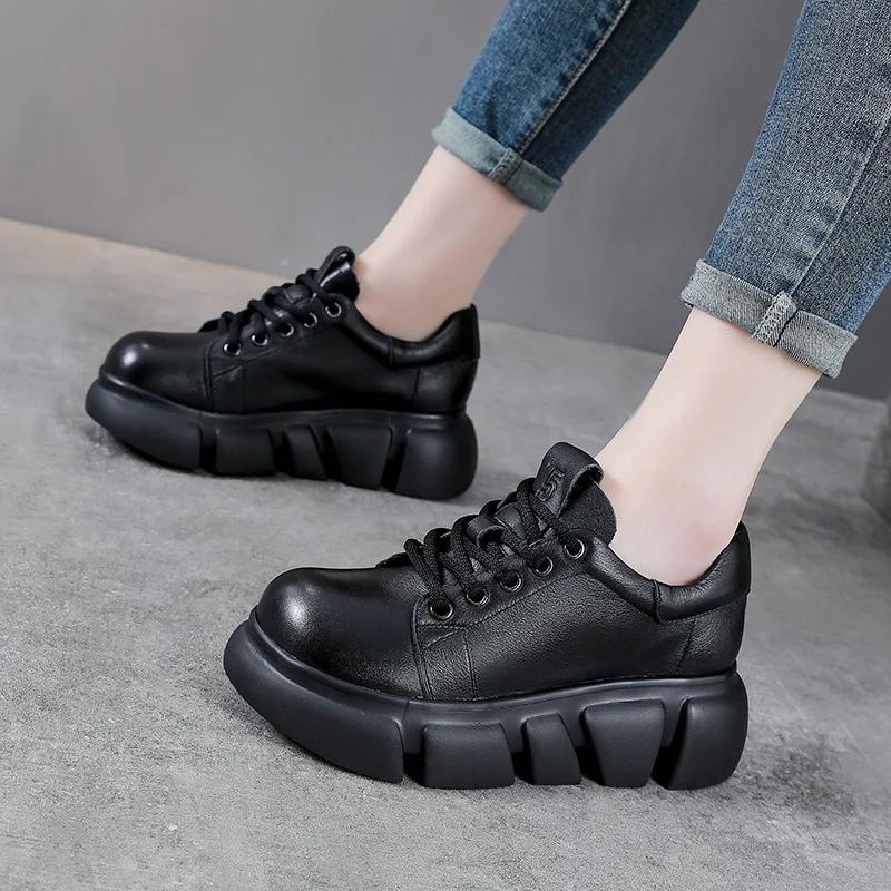 Новинка 2024 года Fujin, туфли-лодочки из натуральной кожи на танкетке, лето 6 см, роскошные женские весенние ботинки, обувь без каблуков, обувь в стиле ретро 39 чёрный