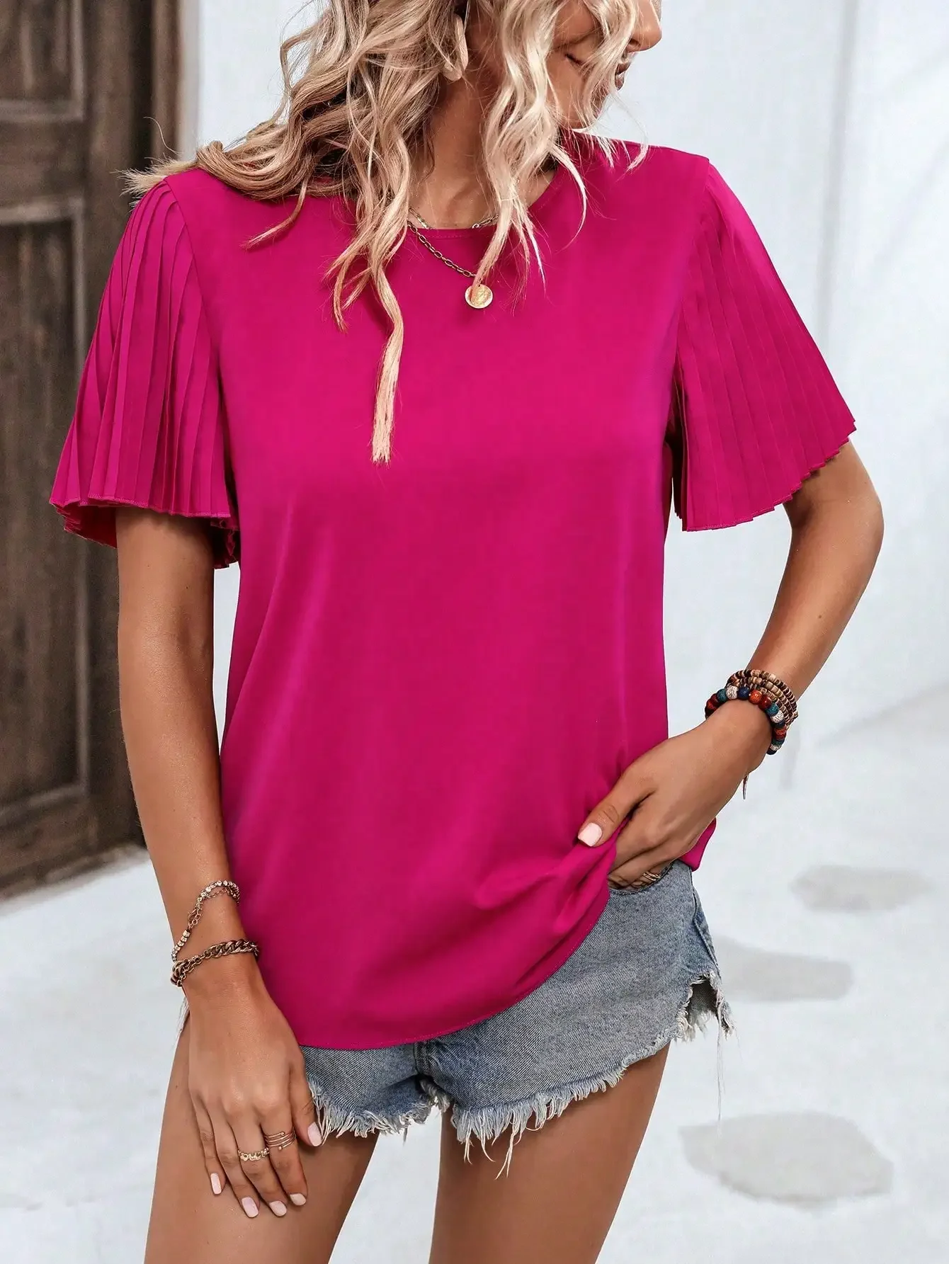 Новинка 2024, женская рубашка, Повседневная модная универсальная рубашка, женский короткий топ, модный короткий топ с плиссированными рукавами