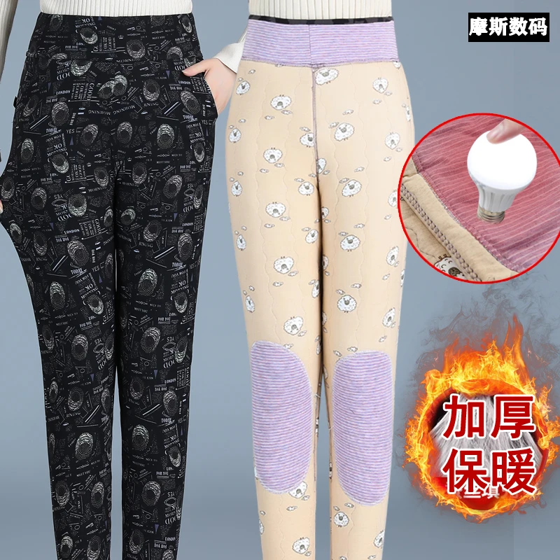Новинка 2024, зимние утепленные брюки, женские модные брюки, теплые бархатные облегающие эластичные женские брюки с высокой талией и цветочным принтом