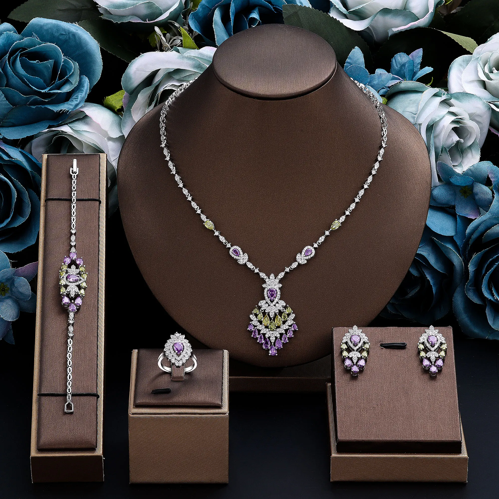 Новинка 2024 изысканный кулон Дубай Свадебный комплект ювелирных изделий Свадебная вечеринка комплект из 4 предметов