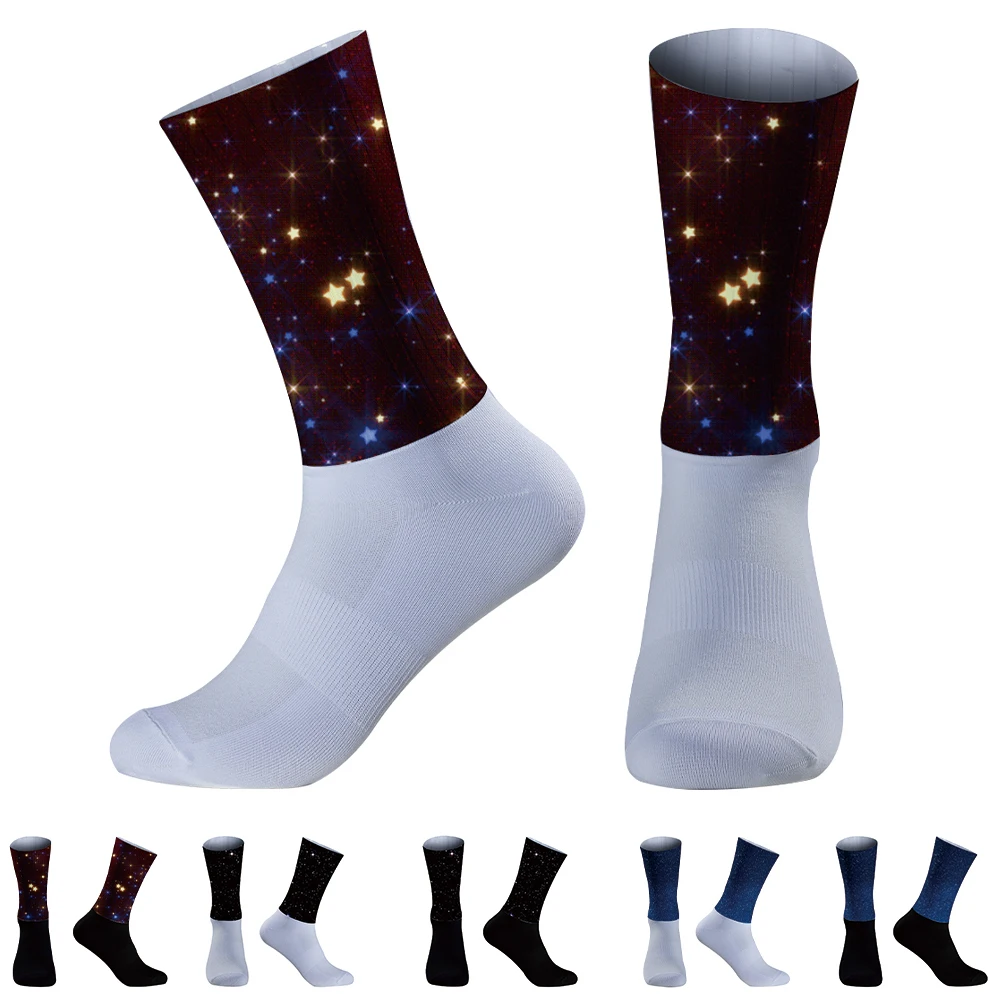 Новинка 2024, летние нескользящие антисиликоновые аэро носки, белые велосипедные носки, мужские велосипедные спортивные носки для бега, велосипедные носки Calcetines