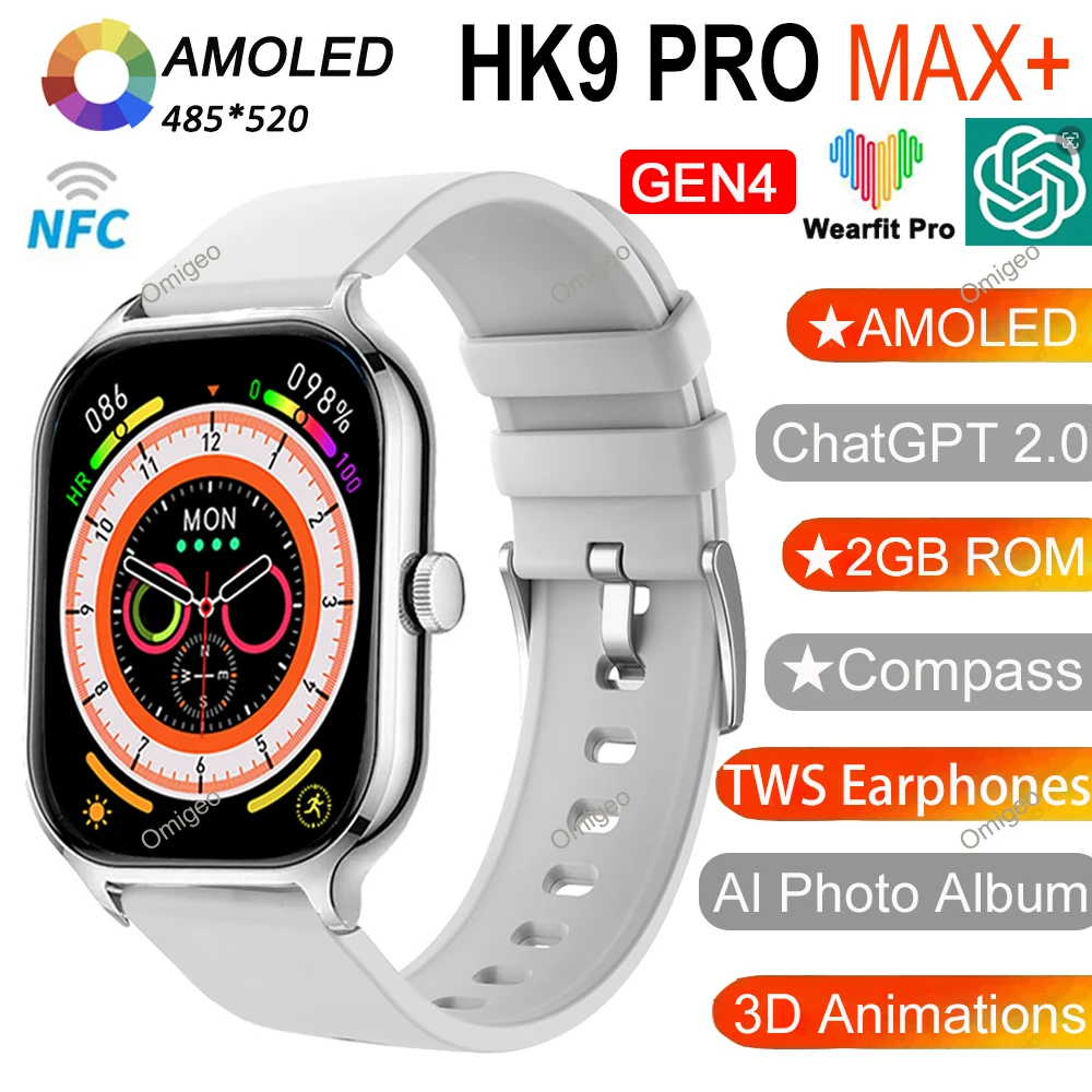 Новинка 2024, оригинальные Смарт-часы HK9 Pro Max + Gen4, общение AMOLED, фотоальбом, компас, пульсометр, местная музыка, мужские спортивные часы