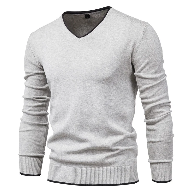Новинка 2024, пуловер из 100% хлопка, мужской свитер с V-образным вырезом, однотонный осенний облегающий свитер с длинным рукавом, повседневная одежда