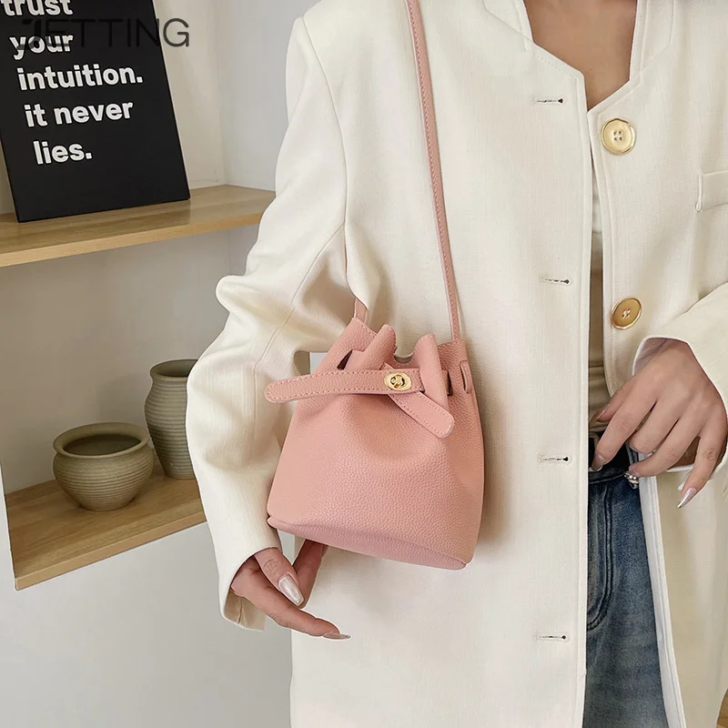 Новинка 2024, сумка через плечо, модная простая кожаная сумка-ведро для женщин, маленькая сумка на плечо, роскошная Повседневная универсальная сумка на шнурке