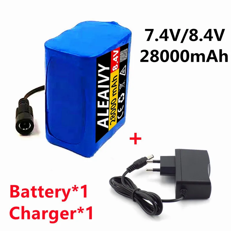 Новинка 8,4 в 28000 мАч 18650 литий-ионные батареи 7,4 в 28 Ач литий-ионный перезаряжаемый аккумулятор для велосипесветильник онаря фары
