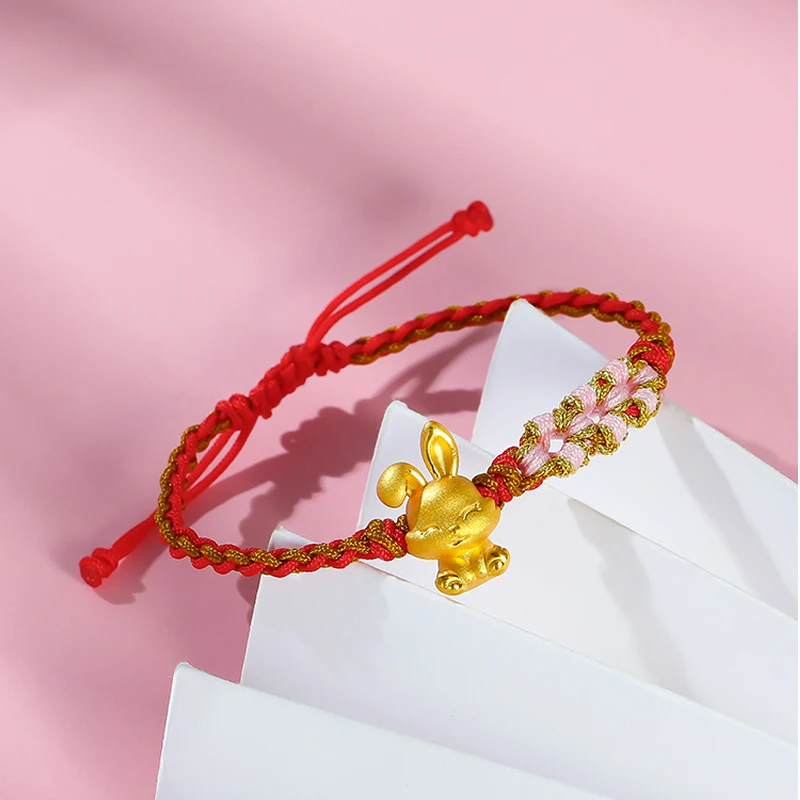 Новинка 999, браслет из желтого золота 24 К, женский браслет ручной работы со знаками Зодиака и кроликом, 1 шт.