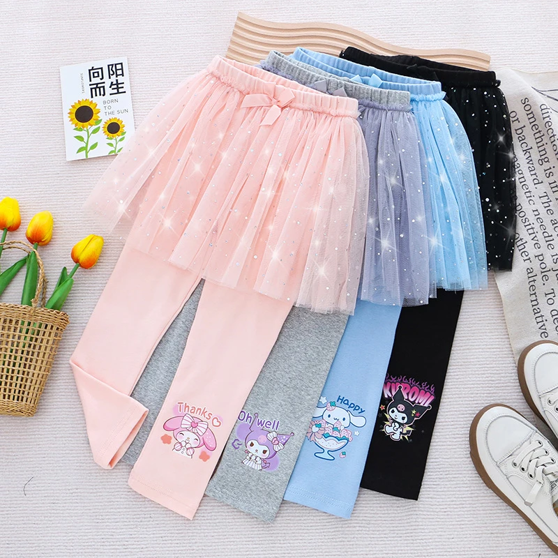 Новинка Kawaii Sanrio детские марлевые кюлоты аниме мультфильм Cinnamoroll Kuromi My Melody осенние Мультяшные леггинсы из чистого хлопка подарок для девочки