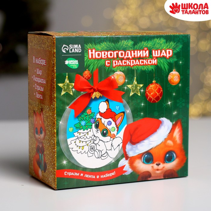 Новогодний набор для творчества. Ёлочный шар с раскраской «Новый год! Лисёнок», d=10 см