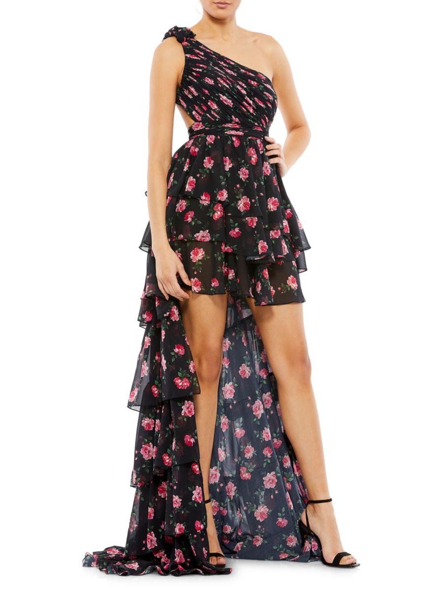 Платье Ieena на одно плечо с цветочным принтом и асимметричным лифом Mac Duggal, черный мульти