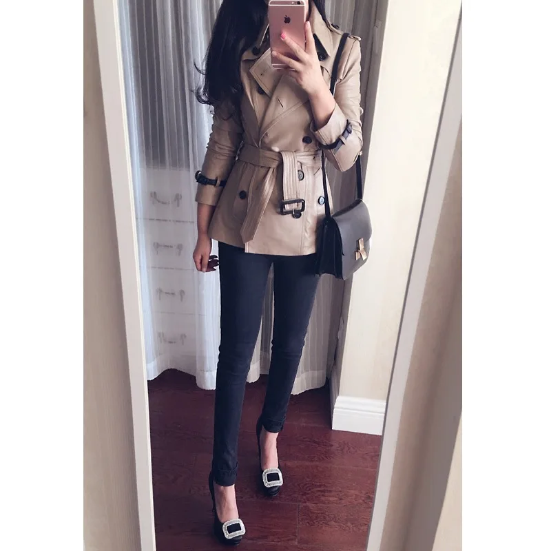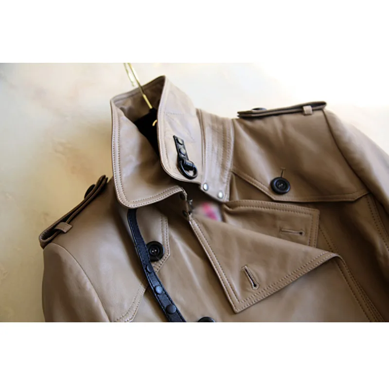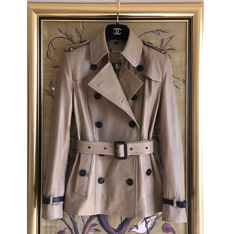 Новое Женское пальто из натуральной кожи, короткая двубортная ветровка из овечьей кожи, облегающее пальто